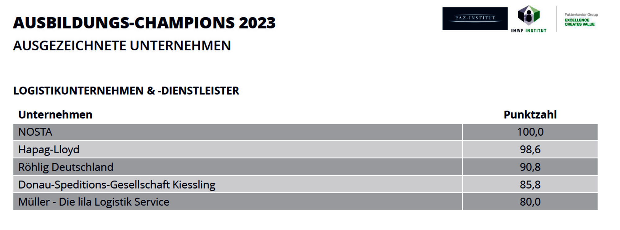 Das F.A.Z.-Institut hat uns kürzlich in einer unabhängig erhobenen Studie mit den Zertifikaten "Deutschlands begehrteste Arbeitgeber" und "Deutschlands Ausbildungs-Champions" für das Jahr 2023 ausgezeichnet. Begleitet wird die Studie vom IMWF Institut für Management- und Wirtschaftsforschung.