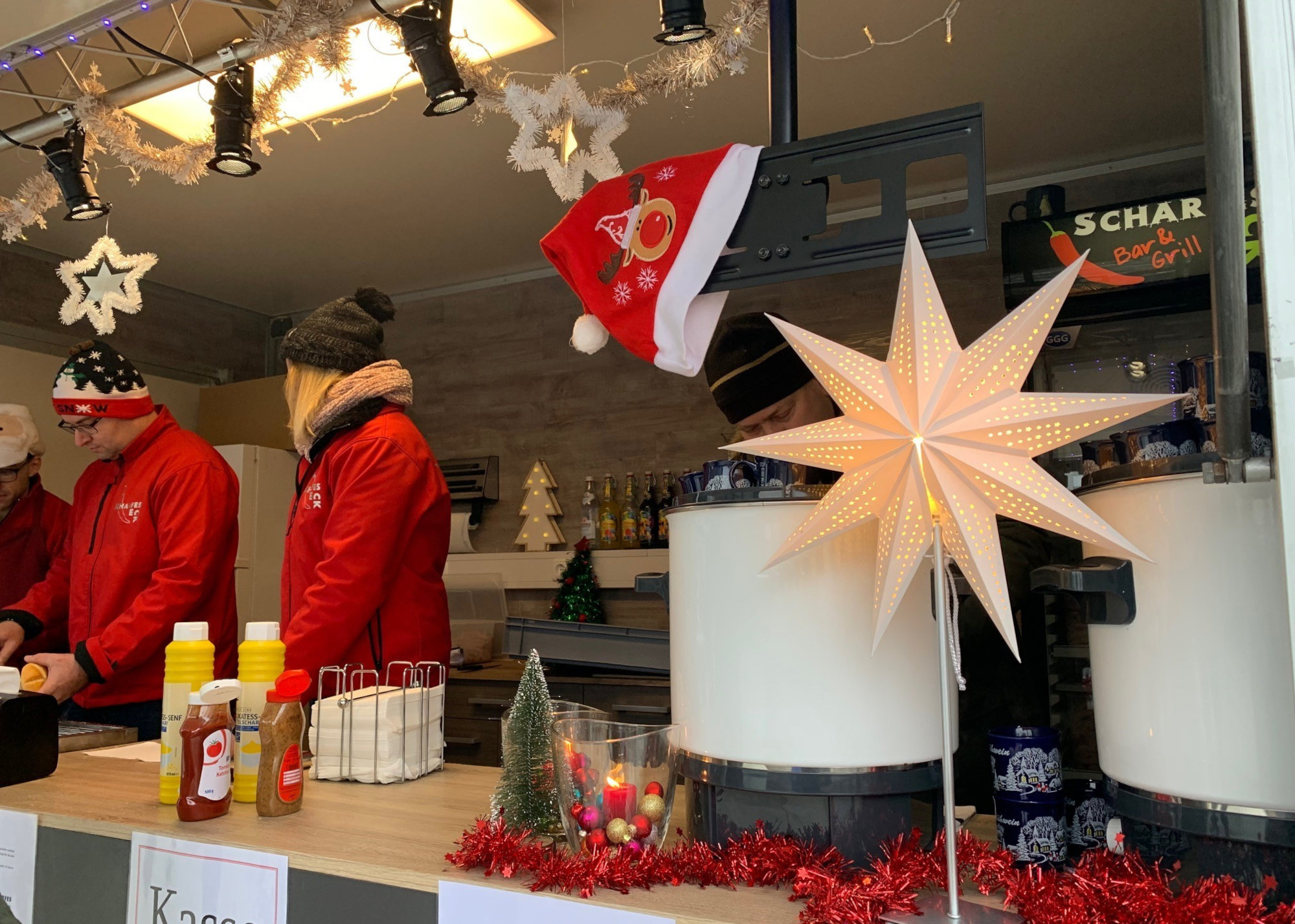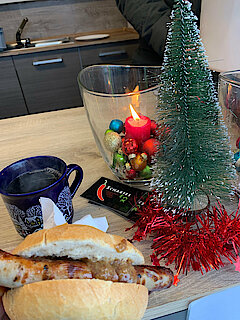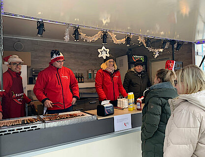 Bei Bratwurstsemmel, alkoholfreiem Punsch und Weihnachtsmusik versorgte das "Scharfe Eck" unsere Kolleginnen und Kollegen mit einer extra Portion Gute Laune.